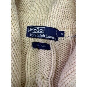 Vintage Polo Ralph Lauren Wool Cable Knit Shawl Collar Cardigan Cream M