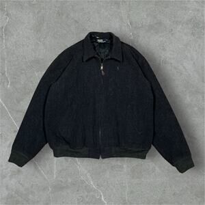 Vintage Polo Ralph Lauren XL Full Zip Grey Wool Bomber Jacket Pony