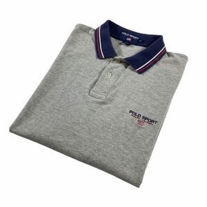 Vintage Polo Sport Ralph Lauren Polo Shirt Men XL Grey Spellout Flag 90s Cotton