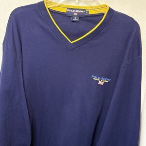 Vintage Polo Sport Ralph Lauren V Neck Long Sleeve Shirt Men’s Size Large Navy