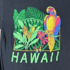 *Vintage Poly Tees Shirt Adult XXXL Black Hawaii Parrot 1990 Flowers Butterfly