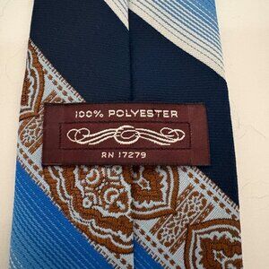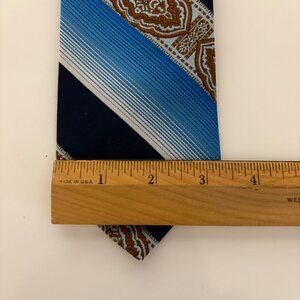 Vintage Polyester Tie Blue Rust Abstract Striped Mens Necktie Classic Office