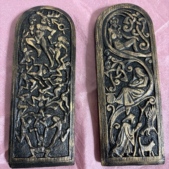 Vintage Polyresin plaques: "Lord of the Dance” & “Maid, Mother, and Crone”