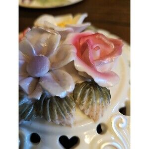 This vintage potpourri bowl is a beautiful addition to any home. White ceramic, it features a multicolor floral designs and measures 5 inches in diameter, height, and width. The bowl is perfect for aromatherapy use and would make a great gift for anyone who loves antique-style d cor. The bowl has been previously owned but is in perfect condition and ready to be used for years to come. Add this charming piece to your collection today!