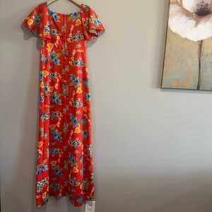 Vintage Pomare Hawaii Babydoll Maxi Dress Tropical Beach Vacation Floral 8