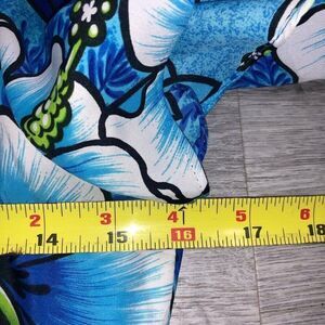 The dress is a size 10 and is designed for regular-sized women. The blue hibiscus dress is a perfect addition to any wardrobe. The dress is ideal for those who love flower, Hawaiian, and tropical themes. Don't miss out on the chance to own this unique item from the past.