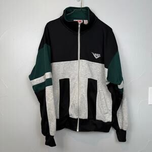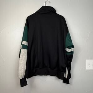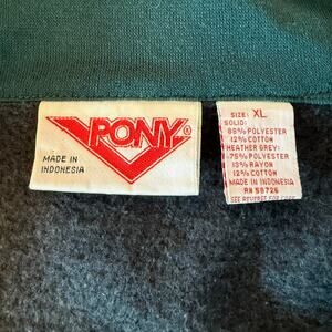 • Style Profile: Vintage Pony track jacket, men’s XL, retro 90s streetwear vibe, colorblock black/grey/green with embroidered Pony logo