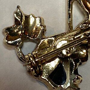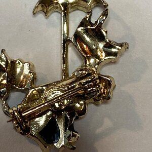 Vintage Poodle Brooch With Blue Umbrella & Rhinestone Eyes J0134