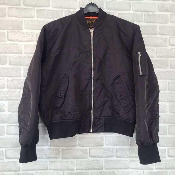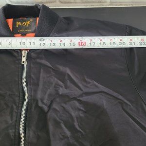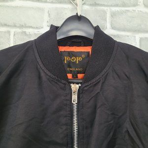 Vintage Pop England Black Bomber Jacket Mens Large Orange Lining