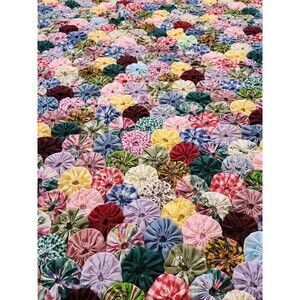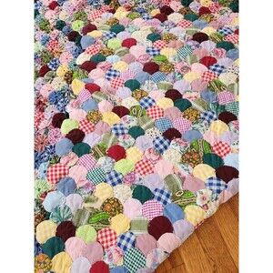 Hand made Popcorn Quilt. This is in amazing condition!! The top is the Popcorn pieces, and hand sewn pieces patched on back. There are 2 matching pillow cases, that has 1 piece that needs restitching. Size is 76 x 90, and the Shams are 20 x 29. Stunning quilt!!