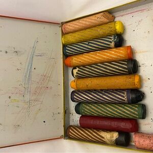 Inside of tin has marks from the crayons