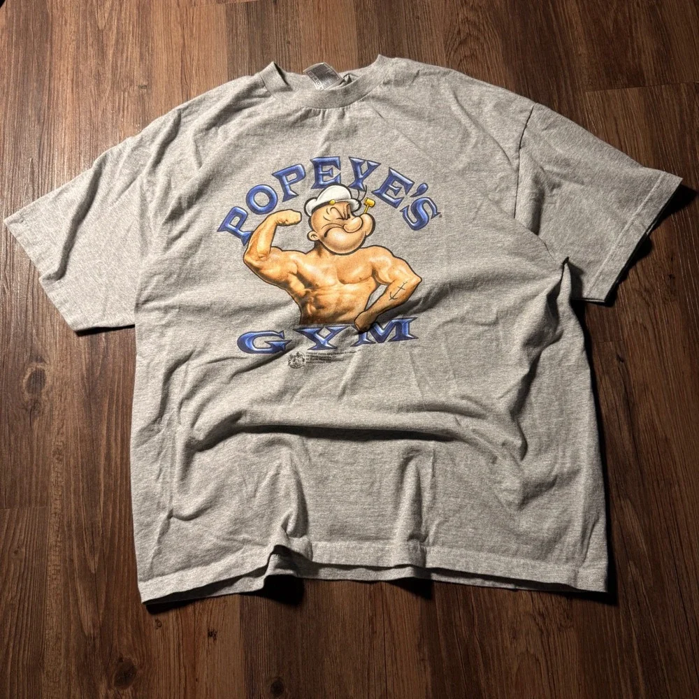 Popeye, Popeye's Gym, Vintage T-Shirt, Graphic Tee, Cartoon Shirt, Retro Clothing, Alstyle Apparel, 2XL, Men's T-Shirt, Gray T-Shirt, 2003, King Features, Gym Shirt, Workout Shirt