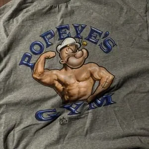Vintage Popeye's Gym 2003 Graphic T-Shirt Alstyle Apparel 2XL Gray Cartoon