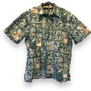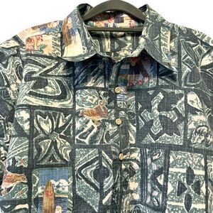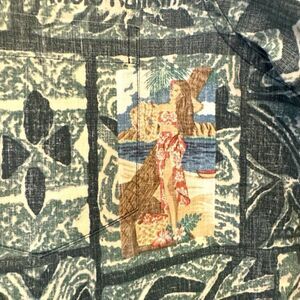 This amazing vintage shirt is in excellent condition. The print has a Hawaiian pattern with surfing Santa, a hula girl, and other Christmas related graphics. It is 3/4 button down. It has not tag, but based on the measurements, it’s likely a XXL. It’s the perfect alternative to an ugly sweater for the holidays!