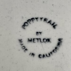 The product is a vintage Poppytrail by Metlox oval plate or small platter, measuring 13” x 10” inches. It is made in California and features a multicolor design, likely crafted from stone material. This unique piece of dinnerware adds a touch of retro charm to any kitchen or dining table, making it a functional and decorative addition to your serveware collection.