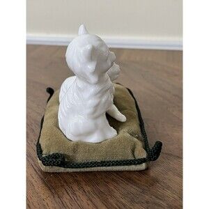 The product is a vintage porcelain figurine depicting two cats on a pillow, manufactured by Ardalt Lenwile China in Japan. This delicate and intricately designed piece captures the charm and elegance of antique cat figurines, making it a unique addition to any collection of animal-themed decor. With its high-quality porcelain material and fine craftsmanship, this item is sure to be a prized possession for any cat lover or collector of vintage figurines.