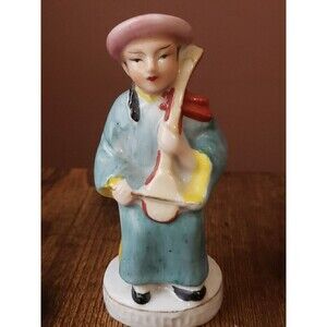 Vintage Porcelain Asian 4.25" Musician Figurine Made in Occupied Japan Painted