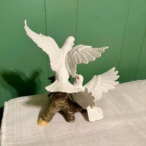 Vintage Porcelain Bisque WELLINGTON White Hand Painted Doves 9.5" Decor