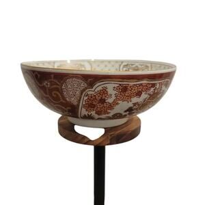 Vintage Porcelain Bowl Gold Imari Hand-Painted Sz 8.5" Asian Decor Red & White