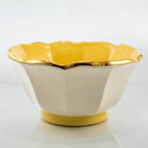 Vintage Porcelain Bowls | Bright Yellow and White with Gold Trim | Set of Bowls