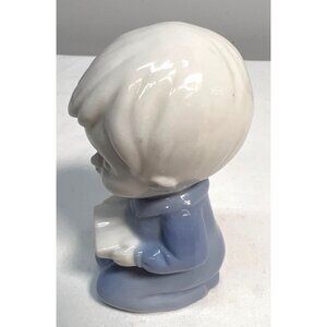 Vintage Porcelain Boy Figurine With Book In Blue & White