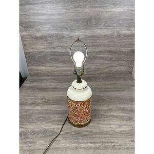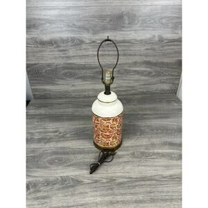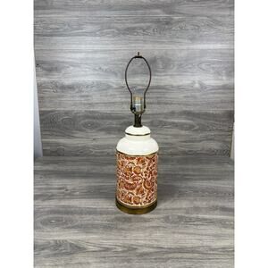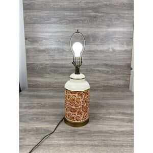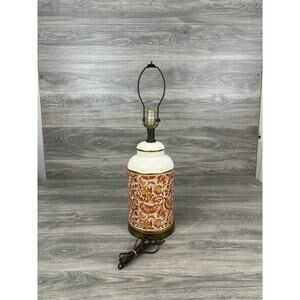 Vintage Porcelain & Brass Chinoiserie Red White Floral Lamp Hand Made & Painted!