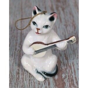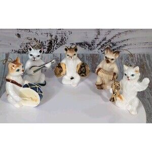 These vintage bone china ornaments are Made in Taiwan feature a charming cat orchestra theme, perfect for collectors of animal-themed figurines. The intricate detailing and multi-color design make them a delightful addition to any collection of cat-themed decor. This is a set of 5 miniature porcelain cat band figurines , each measuring between 2.6" - 3" tall by 1.9"-2" wide.