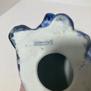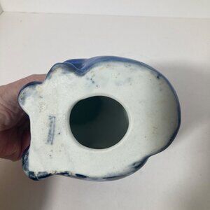 Vintage Porcelain Ceramic Blue Floral Cat 6 x 6.75" Signed