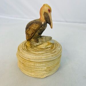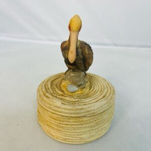 Vintage Porcelain Ceramic Nautical Trinket Box Pelican Sea Ocean Beach Bird