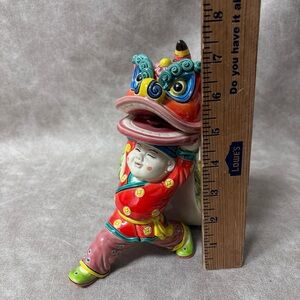 Vintage Porcelain Chinese Lion Dance Statue - Signed -Home Decor
