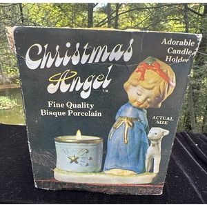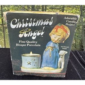 Vintage Porcelain Christmas Luvkins Angel with Lamb Candle Holder Jasco 1978 S66