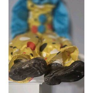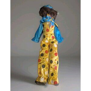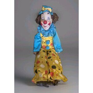 Wearing satin outfit & hobo shoes , this clowns arms & legs are soft & dangle ... not stiff. Head, feet, hands are porcelain. No damage of any kind. Nonbreaks or repairs. Comes from a smoke-free / pet-free home.