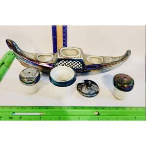 Vintage Porcelain De France Blue Lusterware Gondola Salt And Pepper Shaker Boat