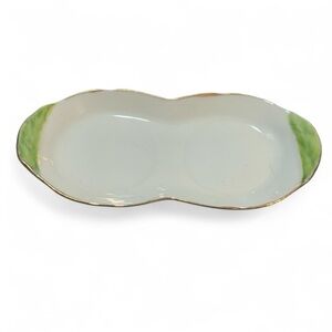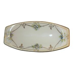 Set of three vintage porcelain plates with intricate designs. Features blue, green, and gold accents.
