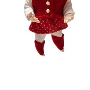 Vintage Porcelain Doll Ornament With Red Polka Dot Dress & White Tights
