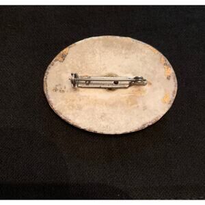 Beautiful set!! Vintage porcelain floral motif brooch with matching screw back earrings. Oval shaped porcelain floral motif brooch measures 2 inches horizontal and 1.5 inches vertical and earrings measure .75 inches horizontal and 1 inch vertical. Floral colors include pink, green, blue, yellow on white background. Gold edging has wear on both the brooch and earrings. No markings.