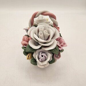 Vintage Porcelain Flower Basket Ornate Accessory Miniature Pastel Italian Style