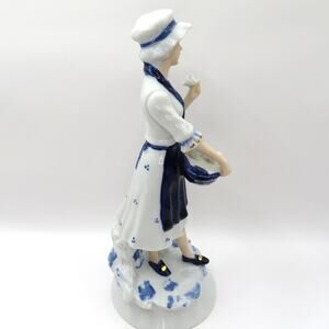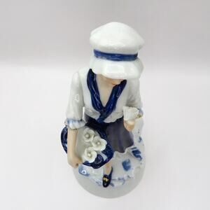 Vintage Porcelain Flower Girl Statuette Blue and White Figurine Cottage Core