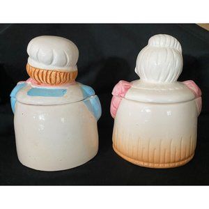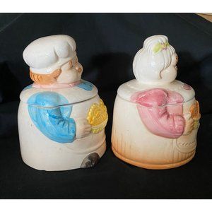 Vintage Porcelain Grandma Grandpa Baker Containers Jars with Lids