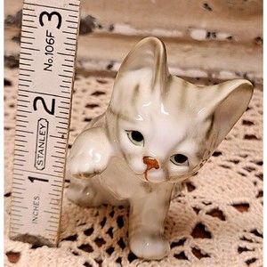 Vintage Porcelain Grey Cat Kitten w/ Stripes Ready to Play Figurine