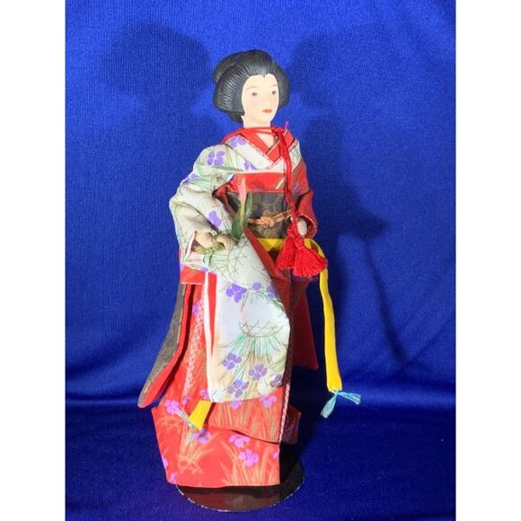 Vintage Porcelain Japanese Geisha Doll Authentic Cloth Dress