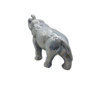 Add a touch of charm to your decor with this vintage porcelain lusterware elephant figurine. Its iridescent finish and good luck symbolism make it a delightful collectible or gift.