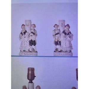 Vintage Porcelain Oil Lamp Base Colonial Victorian Couple Occupied Japan