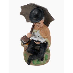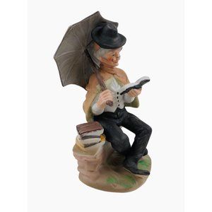 Vintage Porcelain Old Man Reading Outdoor Umbrella Farmhouse Home Decor