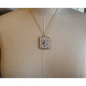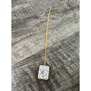 Vintage Porcelain Pendant Franklin Mint Valentine Sweetheart 18” Chain Floral