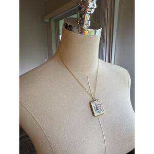 Simply stunning statement piece. The porcelain is wrapped in 24kt gold trim. Excellent condition with no chips or paint flaws. It rest on an 18” gold toned chain. Please refer closely to pictures and feel free to reach out with any questions.