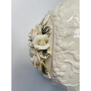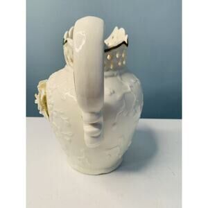 Vintage Porcelain Pitcher 3D Roses Lattice Neck 7.5" Cream Home Decor Rose Vase