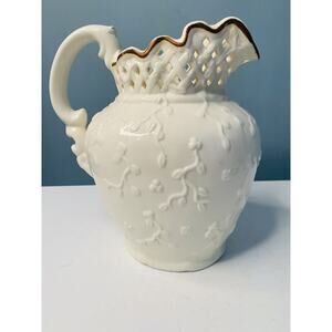 Add a touch of elegance to your home decor with this vintage porcelain neck pitcher. The pitcher features a beautiful lattice pattern with roses as the main subject. It is perfect for any room and occasion, whether you are looking for a centerpiece or a decorative item.