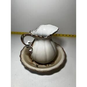 Vintage Porcelain Pitcher and Bowl Wash Basin Set Hand painted Fruit Kitchen