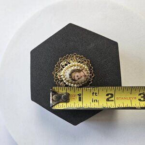 Vintage Porcelain Portrait Faux Seed Pearl Filigree Brooch Pin Pendant Limoges